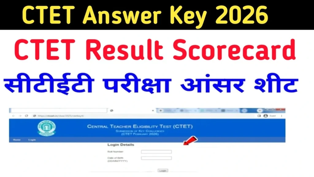 CTET Answer Key 2026 Result सीटीईटी परीक्षा आंसर शीट ओर स्कोरकार्ड रिजल्ट