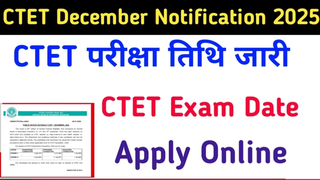 ctet December Notification नमस्कार आज सीटीईटी परीक्षा को लेकर समाप्त की सीटीईटी परीक्षा नोटिफिकेशन को लेकर समाप्त हुआ ही अब