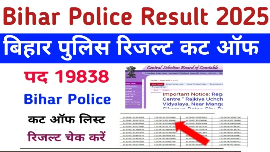 Bihar Police Result 2025 नमस्कार स्वागत है आज बिहार पुलिस कांस्टेबल रिजल्ट आज जारी बिहार पुलिस कांस्टेबल भर्ती की रिजल्ट
