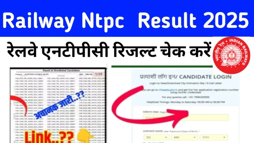 Rrb Ntpc cbt 1 Result 2025 हेलो नमस्कार स्वागत है रेलवे एनटीपीसी परीक्षा परिणाम को लेकर रेलवे एनटीपीसी रिजल्ट रेलवे